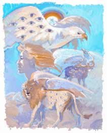 there is mesmerized by the Almighty. The four living creatures can't