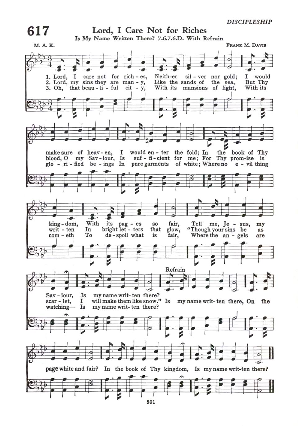 617 - Lord, I Care Not for Riches
