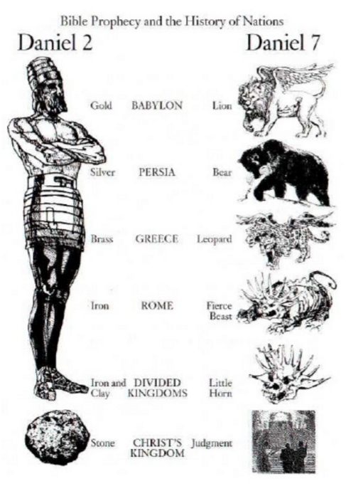 6. You will remember our lesson on Daniel 2, where the great image symbolized the rise and fall of nations, and the end of "world history at the second coming of Jesus. Daniel was given another prophetic vision in chapter 7 with many more details included.