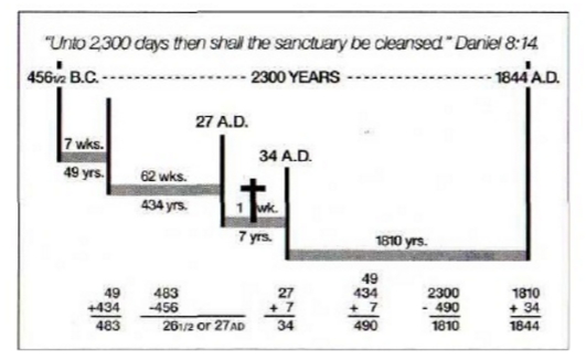 Subtracting the 490 years of Daniel 9:24 from the 2300 years leaves us with 1810 years. From A.D. 34, 1810 years extend to 1844. Consequently, the 2300 days of Daniel 8:14 end in 1844.