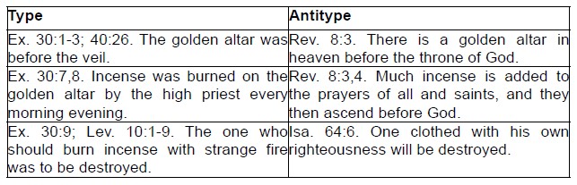 The altar and the fragrant incense in the earthly sanctuary were an example of the work our great