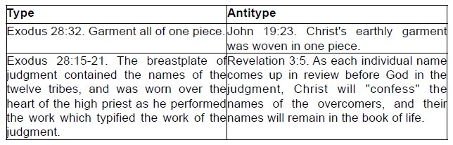 The pure white garments were worn by the high priest on ordinary occasions, but when he entered the most holy place to make atonement for the people, he was clad in gorgeous robes, which fitly represented our High Priest as He confesses the names of His people before the judgment-seat of the judge of the whole earth.