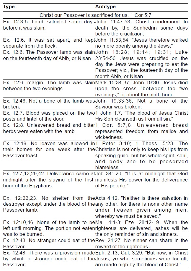 The Passover was the opening feast of the yearly round of religious services. It was both commemorative and typical, commemorative of the deliverance of the children of Israel from the bondage of Egypt, and typical of the deliverance from the thralldom of sin of every individual who claims Christ as his Passover Lamb, and accepts His blood as a covering for past sins. (1 Corinthians 5:7)