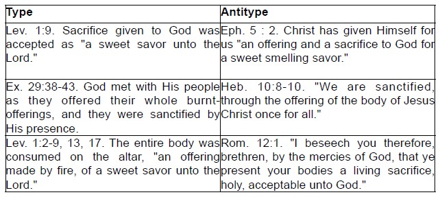Since the shadow has met the substance, it would be hollow mockery to offer burnt-offerings morning and evening now; but the type has lost none of its significance, and contains lessons for us; for "to love Him [God] with all the heart, and with all the understanding, and with all the soul, and with all the strength, and to love his neighbor as himself, is more than all whole burnt offerings and sacrifices." (Mark 12:33)