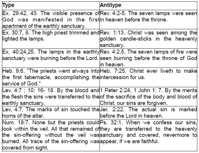 God's presence manifested in the first apartment of the earthly sanctuary was a shadow of the glorious presence and throne of the Father in the first apartment of the heavenly sanctuary, where, after enduring "the cross, despising the shame," the Saviour sat down "at the right hand of the throne of God." (Hebrews 12:2)