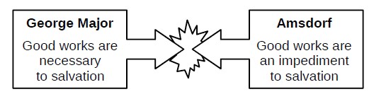 This declaration was severely censured by the rigid Luther- ans, as being contrary to the doctrine and sentiments of Luther. George Major maintained the doctrine of good works, and Amsdorf the contrary. In this dispute Amsdorf was so far carried away by his zeal for the doctrine of Luther, as to assert that good works are an impediment to salvation.
